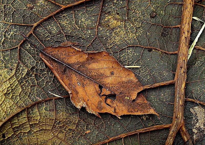Leaves decaying in January provide an interesting study in colour and texture. Co.Kerry, Ireland.2009.
