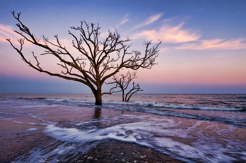 The bones of these dead trees are a reminder of the erosion happening on the coastline. Their skeletons seem to be guarding the shore.