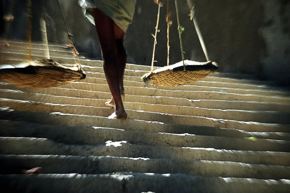I took this shot in Ranchi, India. These labors carry the sand and bricks to a steep hilltop to make a temple.
