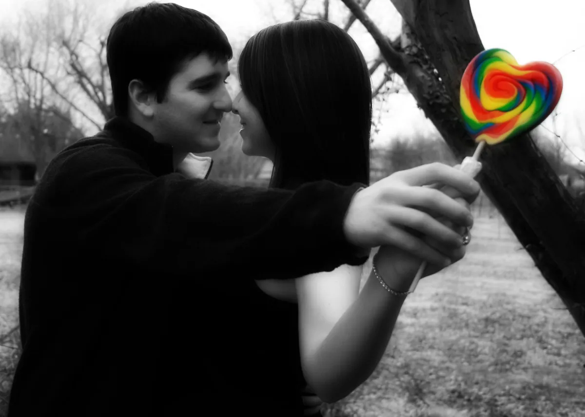 This is a picture of me and my fiance having fun taking some Valentine's Day pictures.