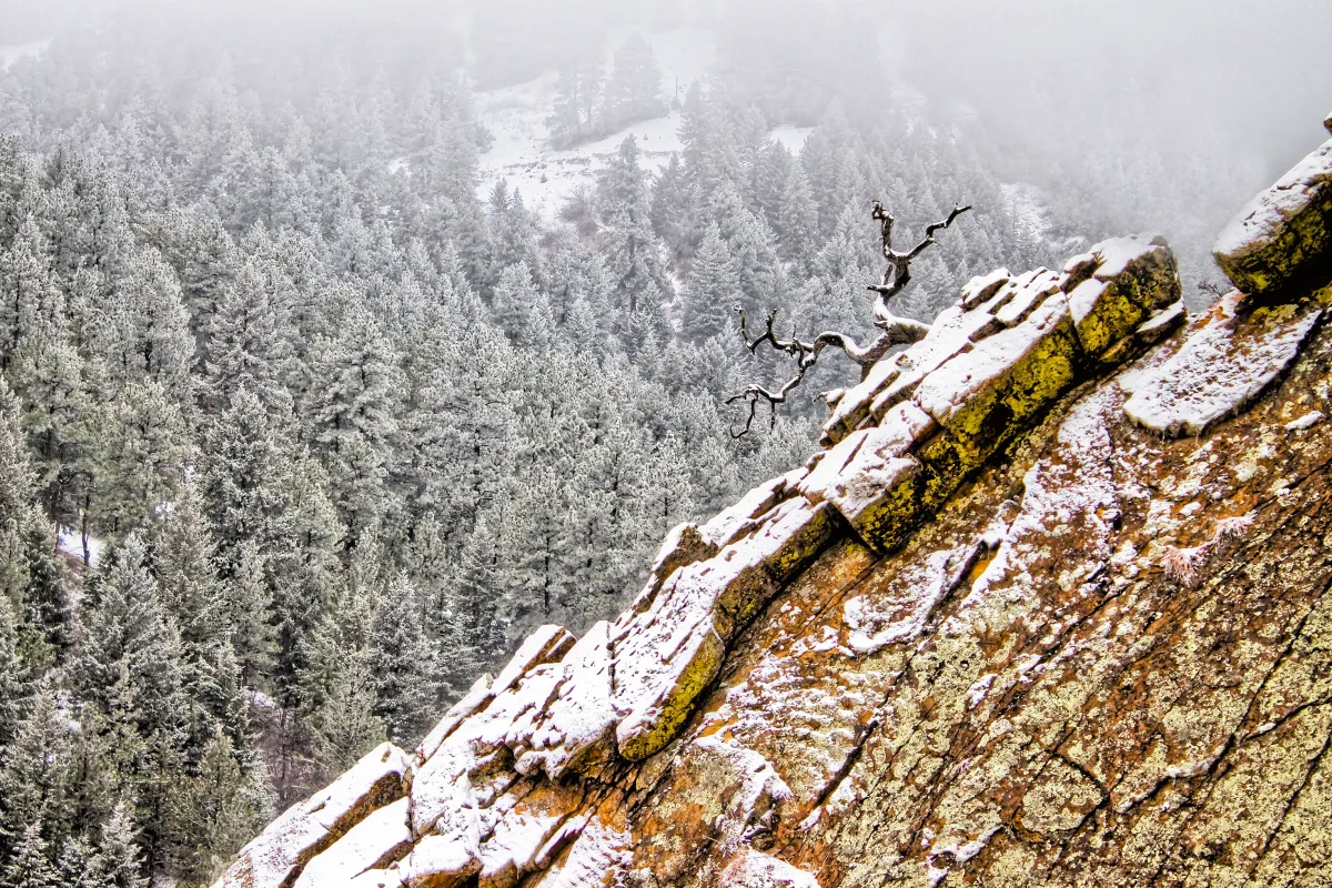This was taken during a bad weather day on a hike I didn't want to go on. It was taken in Boulder, CO at the National Center for Atmospheric Research. They have areas for hiking open to the public. The hoar frost occurred at the time of this hike on February 8, 2010.