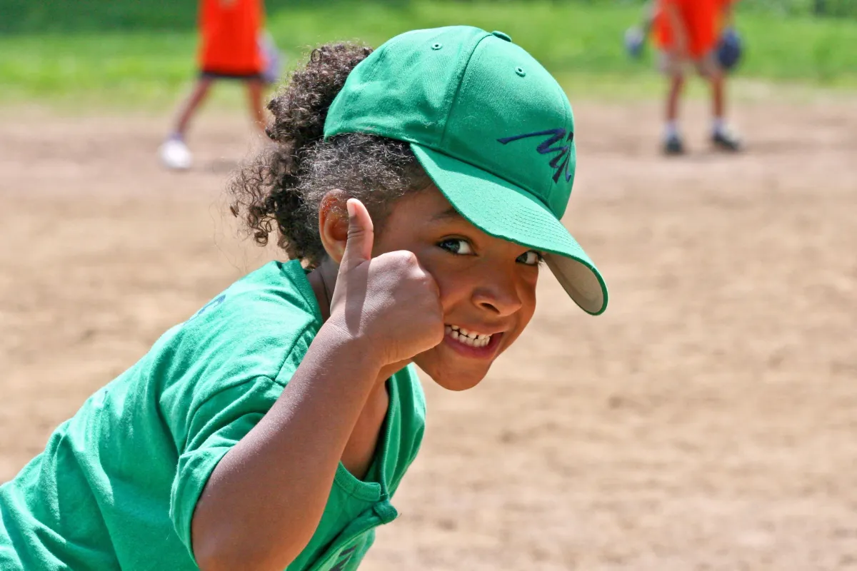 This is a photo of my little grand daughter. She was on third base during a T-Ball game, she looked at me, smiled and gave me a thumbs up. My heart just melted.