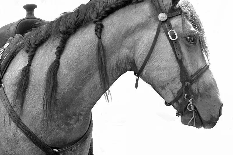Taken at a Cowboy competion. Watched a teen age girl prepare these braids for 40 minutes, don't know how long she had worked before I arrived.
