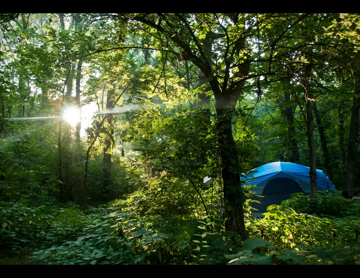 We had a great camping experience at Kankakee River State Park, Illinois. Took this picture over the early morning sunrise over our tent.