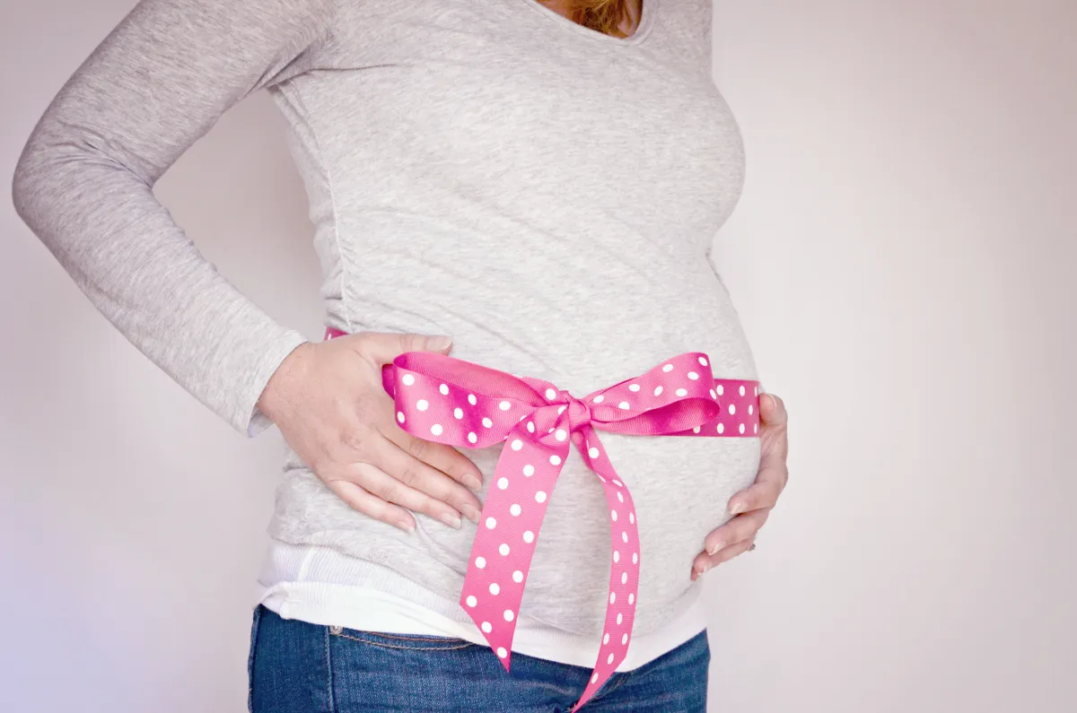 This is my 27 week pregnant belly excitedly expecting our baby girl.