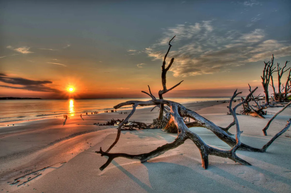 I had to get up at 5:30 a.m. and endure sand flea bites to capture this spectacular sunrise on this deserted beach at Jekyll Island, Georgia.