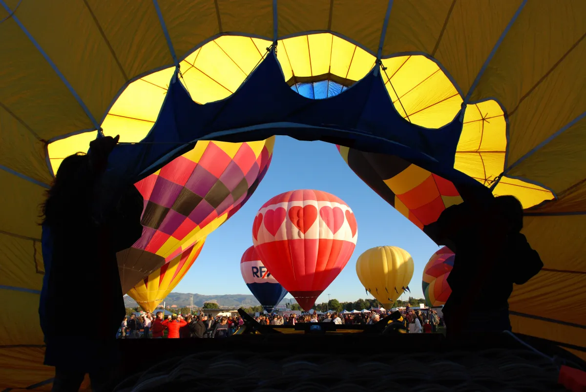 This bright and colorful picture of the inside of a hot air balloon was taken at the annual summer Plainville Hot Air Balloon Festival in CT.