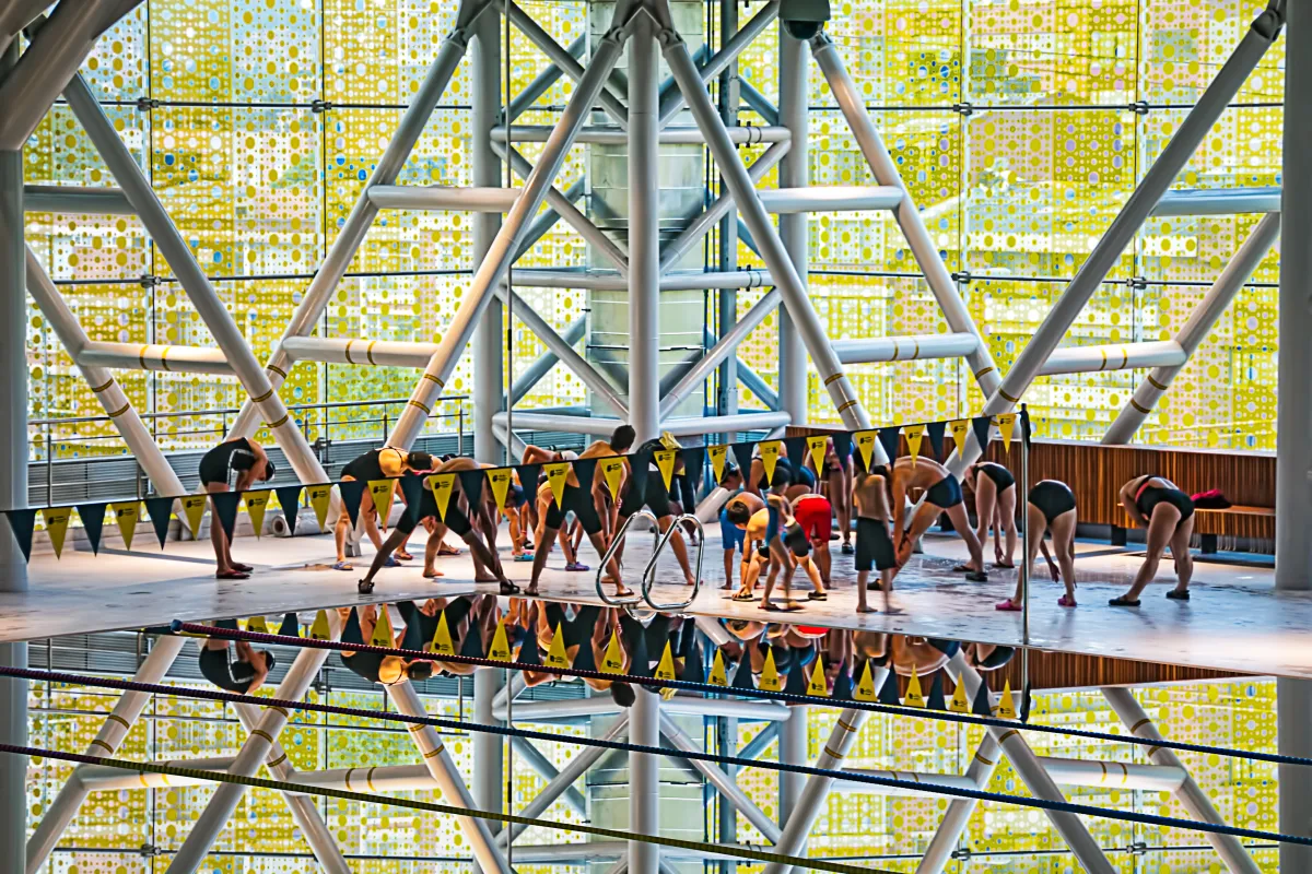 Taken at an indoor swimming pool in Bogota, Colombia. I was attracted to the architecture of the building and the kids were an added bonus.