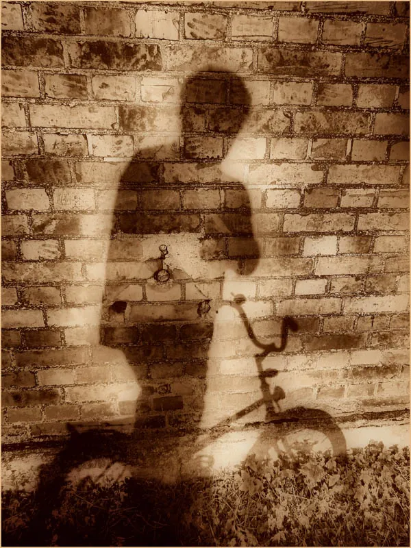 This is my own shadow. This photo wass captured in an old railway station. It was evening and was good light, and I liked the shadow on the wall of old water tower at this station, which is long gone. It was in this summer.