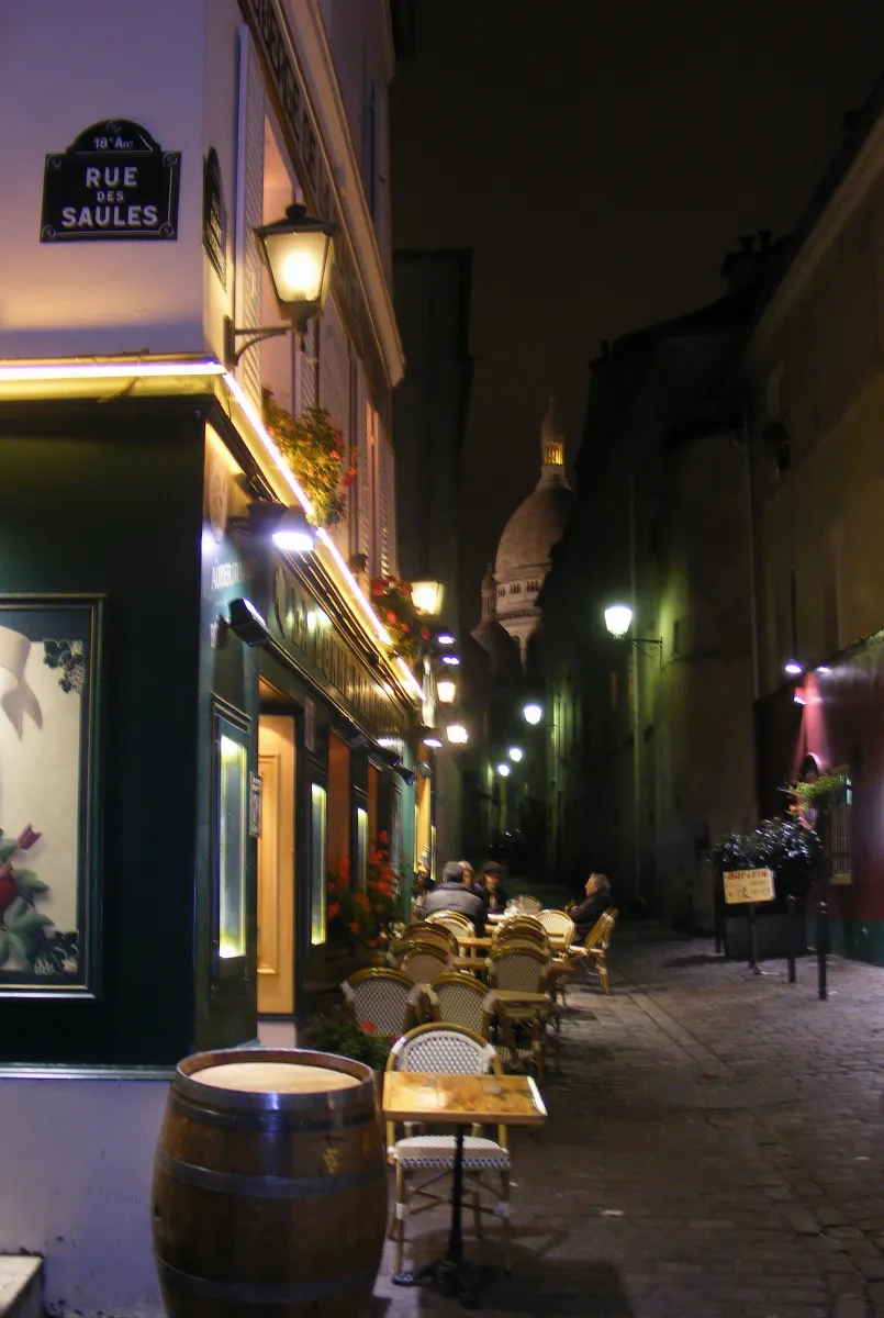 This was our first and only visit to Paris on vacation in October 2008. This photo sums up our special feelings for the cafe/art scene in Montmartre,and also seeing the Sacre Coeur in the background A very special time for my husband and myself.