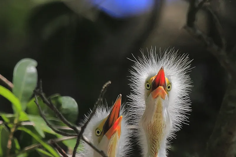 Young Great Egrets struggling to survive cry out to their parents for food.