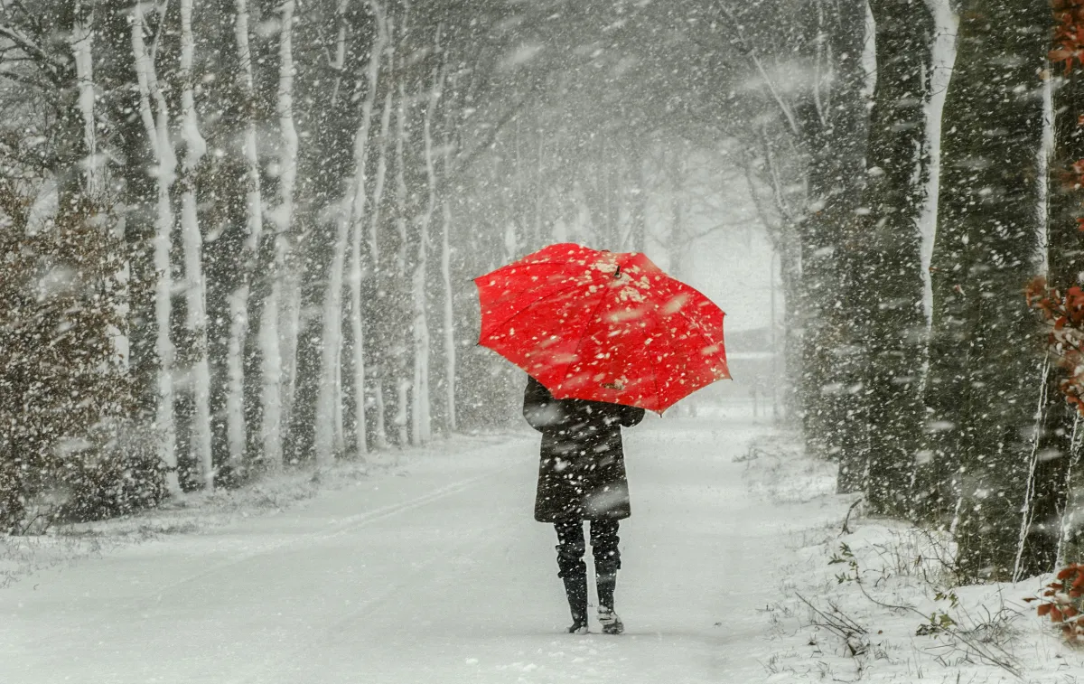 Winter in Wyoming where the wind blows the snow horizontally from the North first, then from the Southwest.