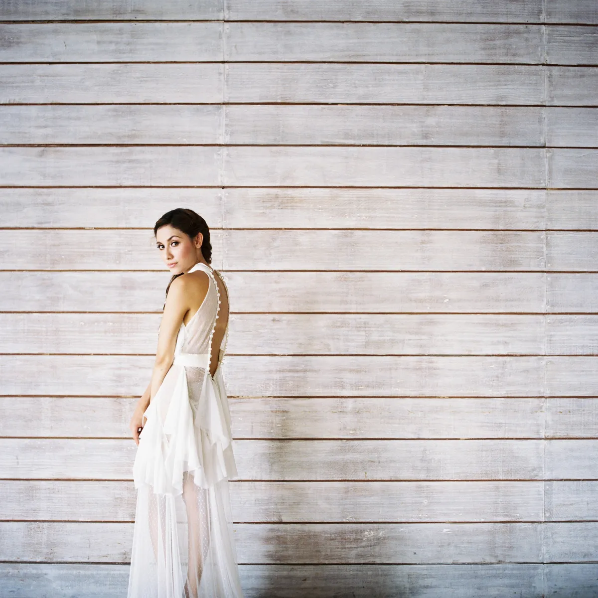 I love this young lady and the contrast of her dark hair and the white chairs.