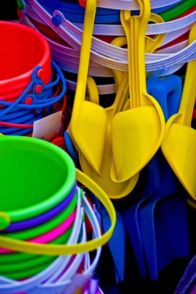 Pails and shovels await the children headed for the beach this summer at Ocean City, MD.