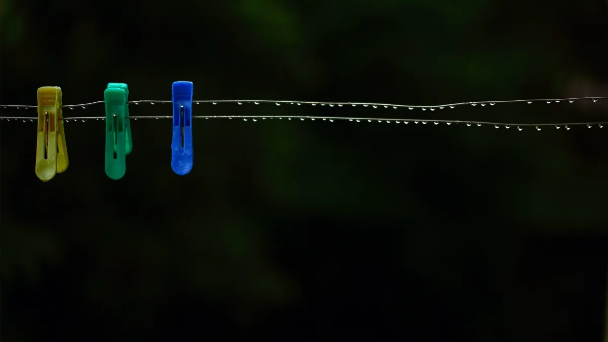 Drying clothes in the monsoon is quite a challenge. Abandoned by the clothes, the clothesline and clothespins were supposed to look sad and forlorn. But it did not! It was as if they came to life... glistening raindrops lined up in unison gave it a special lease of life as the clothes pins took on a fresh colour. The rains seem to cheer just about anyone and anything up!