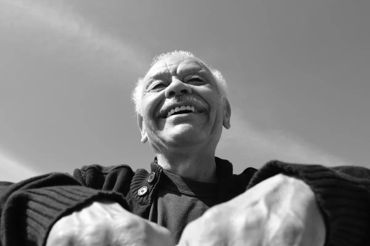 As I was walking to my local library, I saw this man with a very positive facial expression, and I decided to ask him if I could take a portrait of him. I experimented different angles, and the one that I decided was his best angle was in his chest, right under his heart.