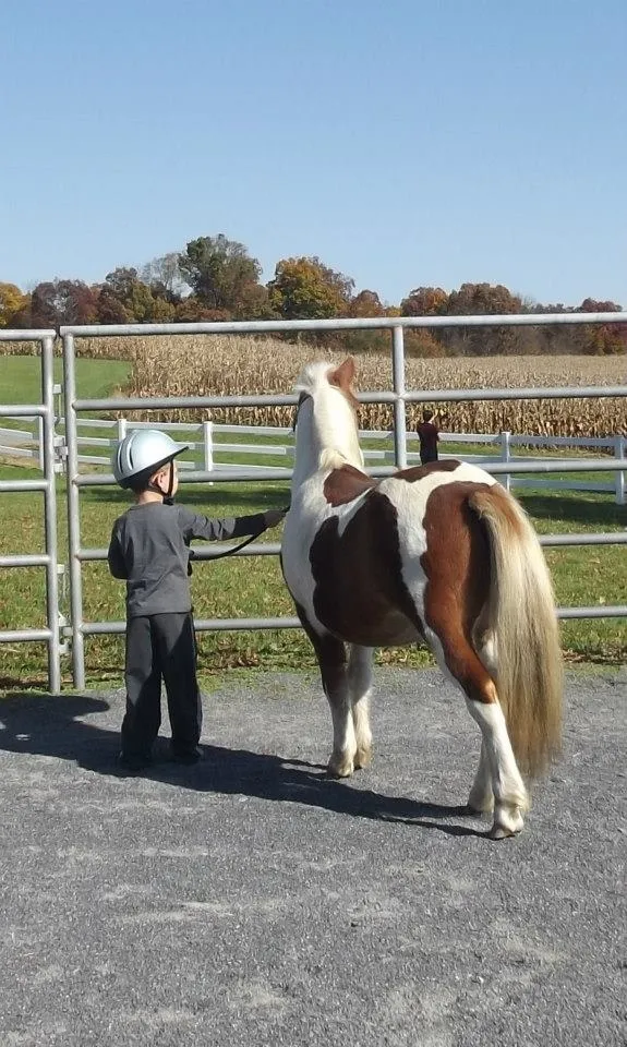 My son Zach and his pony Flash. We got him from an auction and he follows my son around. They are so cute together. You never know that when someone else throws an animal away another person finds a best friend.