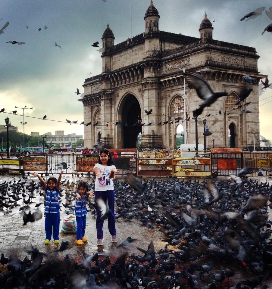 This was clicked at the famous "Gateway of India" in Mumbai. We went here very early on a rainy morning. The very simple and innocent act of feeding the pigeons got my girls thrilled. This picture captures that joy and innocence - writ large on their faces against the backdrop of a famous monument.