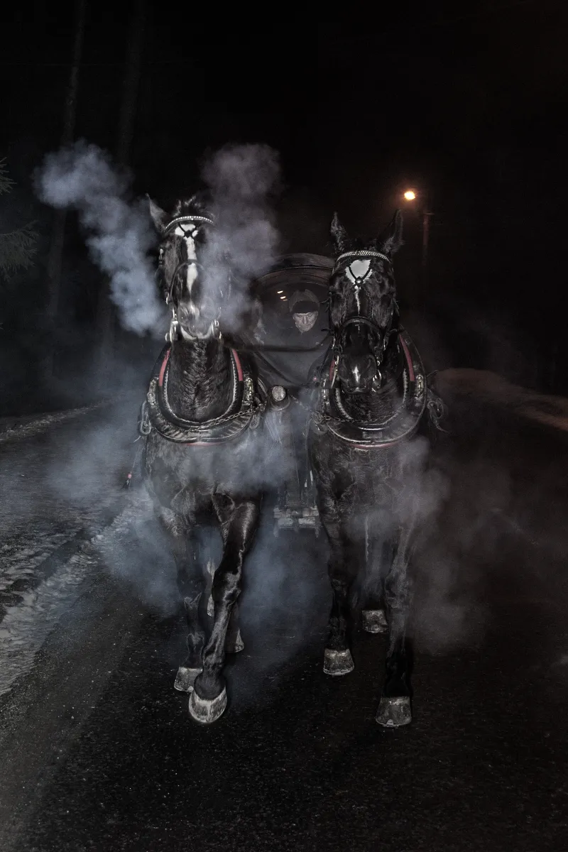 I shot this picture when I was in a little town in Poland called Zakopane. There are a lot of horses in this village to take rides with tourists. Because of the hard work and cold temperature they create a lot af steam.