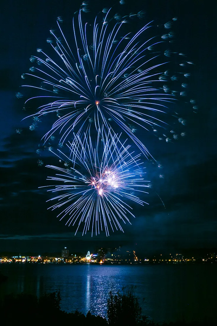 This picture is special to me because it represents a graduation of cameras and skills. It was taken in Barrie, Ontario Canada at the Canada Day celebrations. The fireworks display is the culmination of our city's Canada Day/Promenade Days celebration.