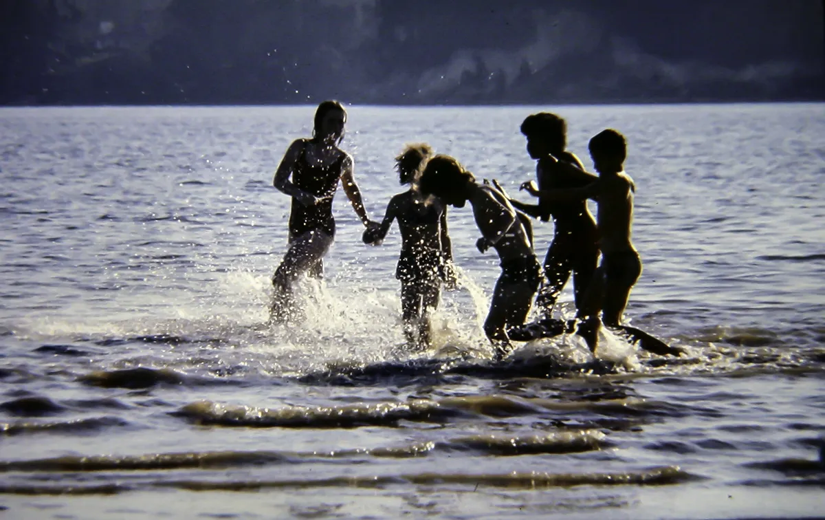 My friend Vanessa jumping in the waters of a moutain lake a sunday of summer