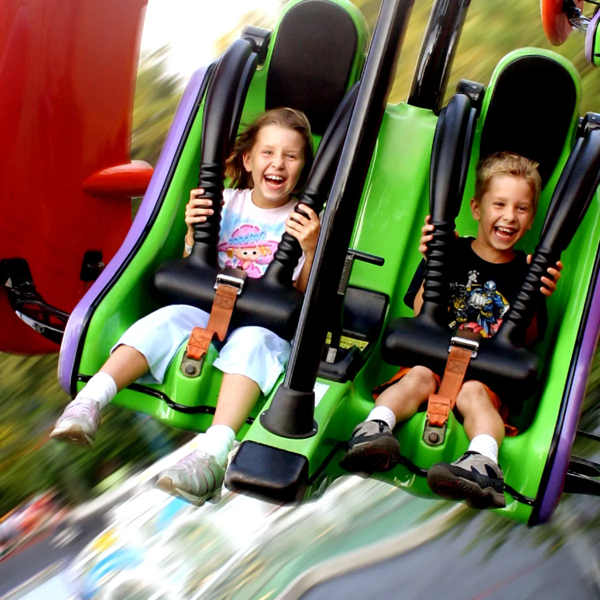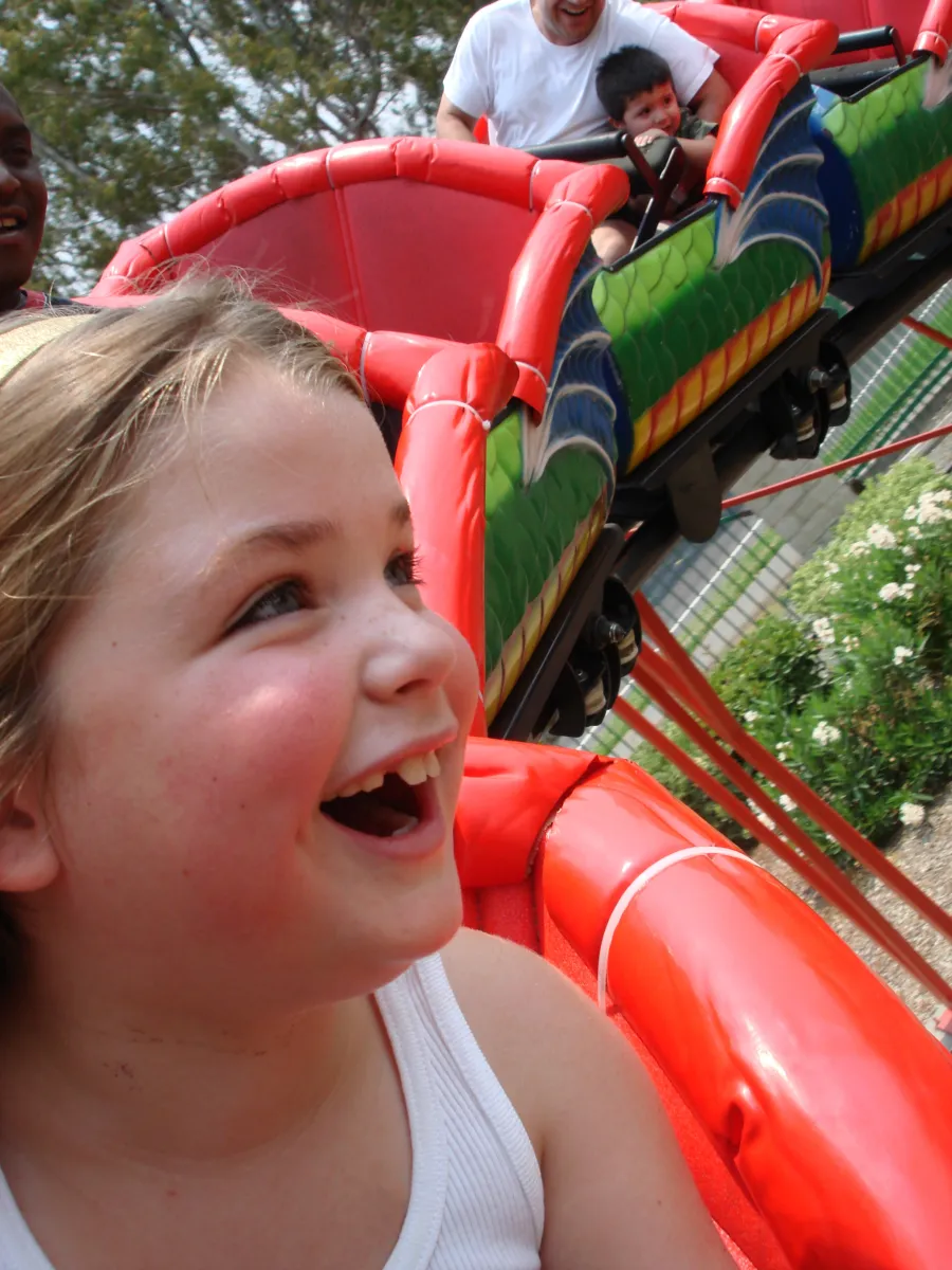 This picture captures the pure exhilaration of one of those treasured childhood memories--a trip to an amusement park! This was taken at Paramount's Kings Dominion last summer. I was in the car in front of them. I focused on the car in front of me, then held the camera over my head to get the shot. Whenever my kids see this image, they ask when will we go back!
