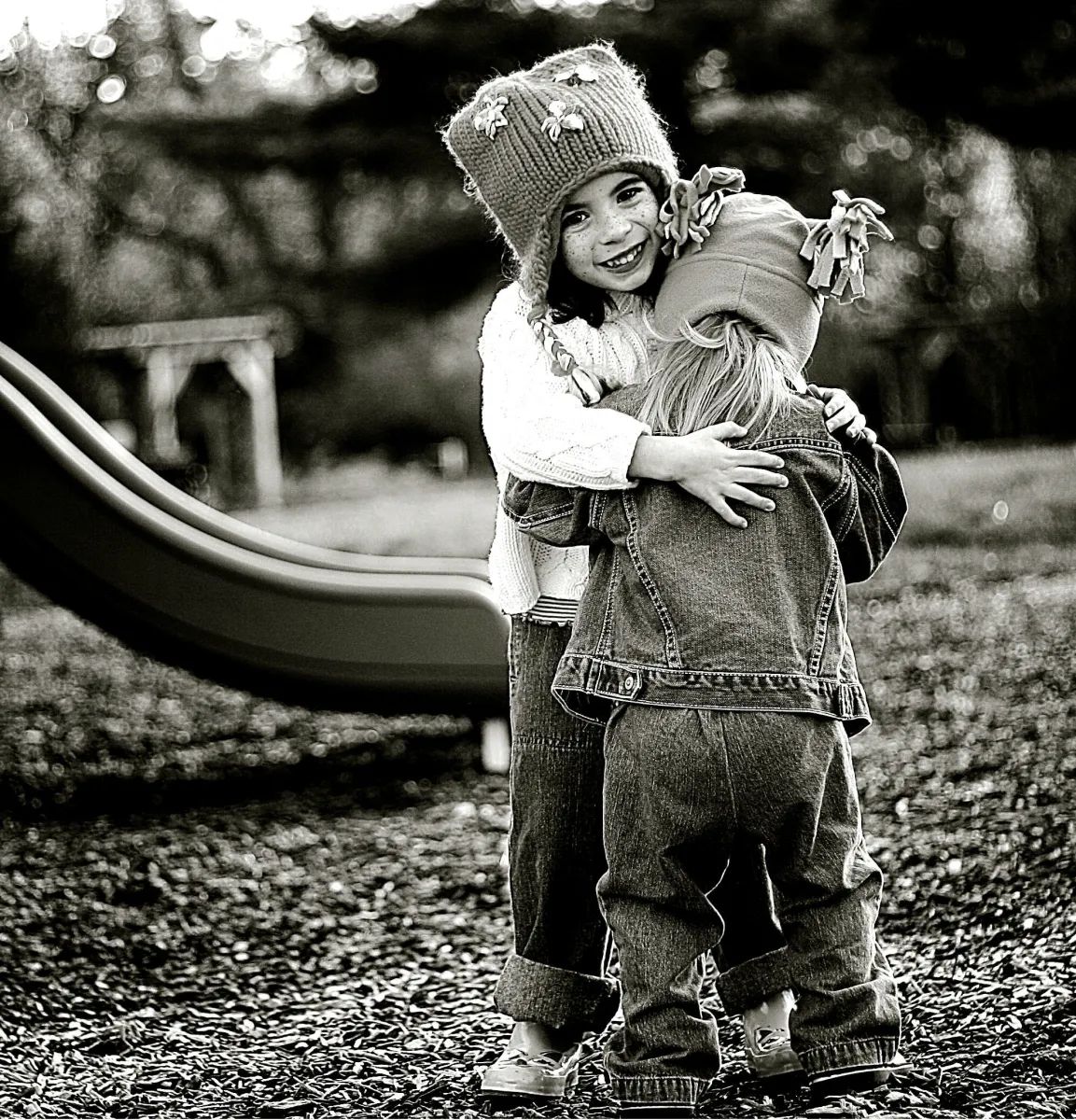 This picture was taken at a local park. The older sister is loving the baby sister after she had fallen down.