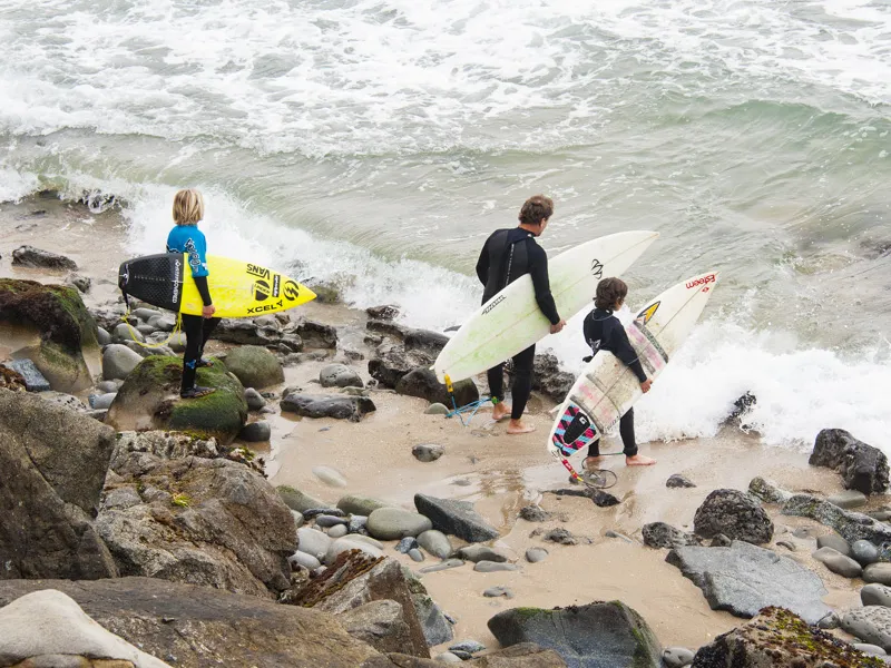 A family outing where everyone surfs below the lighthouse in Santa Cruz California