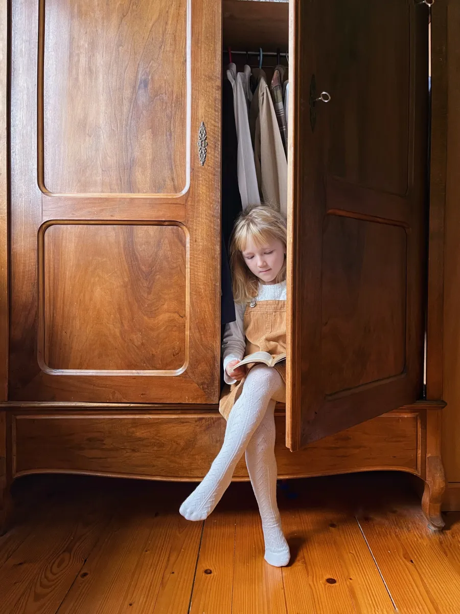 Sitting in the door of the wardrobe leading to Narnia and having a book open on her lap created a beautiful double meaning for this portrait of my daughter. Taken in my childhood home.