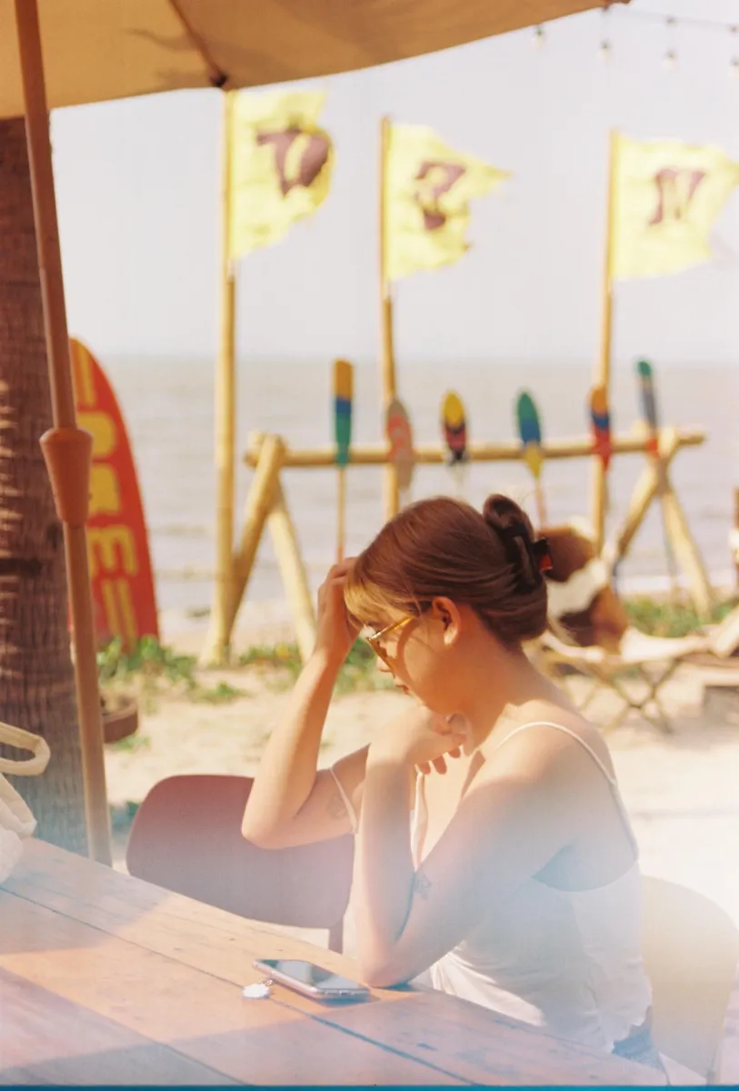 On the holiday trip with my friend in Pattaya,I snap this shot when we spend a lunch time in a restaurant around the beach. I will take a picture of my friend but in that time the wind is so strong I took the photo as she had her bangs checked at exactly that moment.