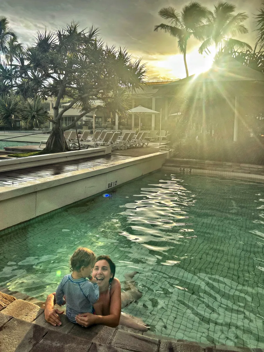 A night away at the Sheraton mirage with our boys. Here we are right after the storm had hit , the beautiful sunset over the pool and resort. The water was beautiful for a late afternoon swim.