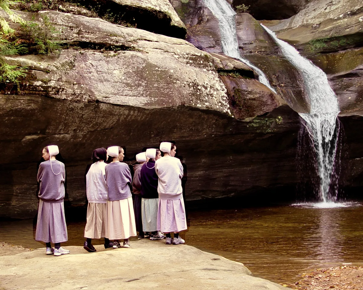 Taken at Hocking Hills State Park in Ohio. I kept thinking, "I wish people would get out of the way so I could take a good shot of the falls..." Then I looked beyond my own short-sightedness and saw what a nice interest this group of Amish ladies added to the scene. It's called "Seperate Ways" because of the split in the falls, the seperate culture of the Amish, and the one lady on the left looking away from the group.