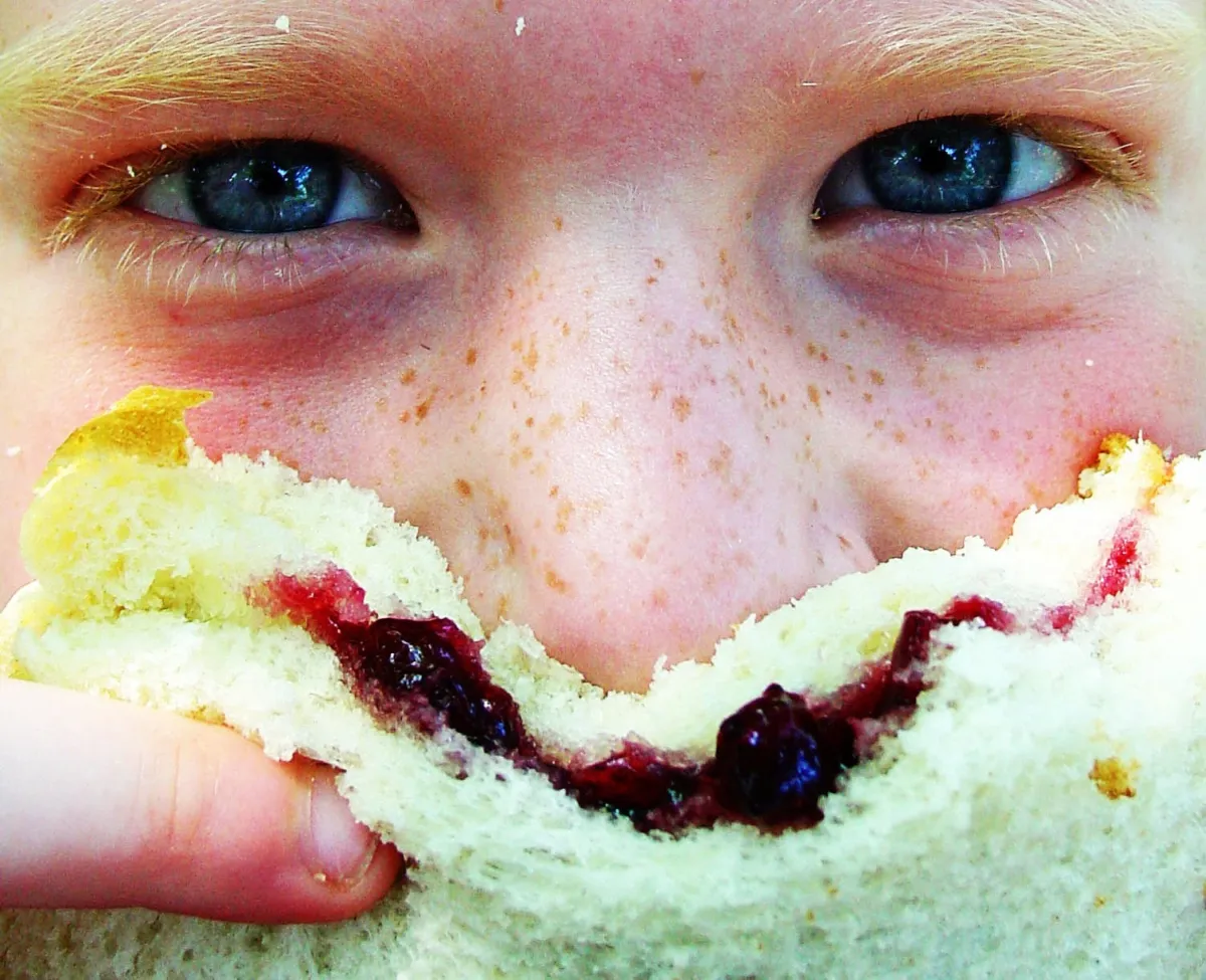This is taken of my niece when we were on a summertime picnic. The girls were all doing funny things with their sandwiches, and it made a cute picture!