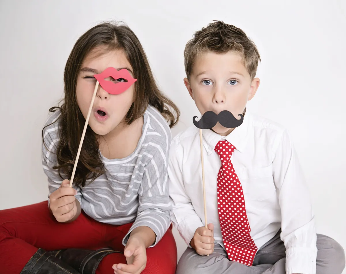 My crazy kids trying out some lip and mustache props!
